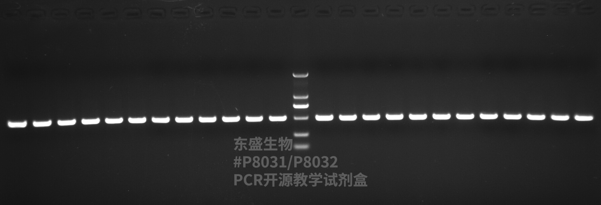 ▲ 实际扩增效果图:中央为DNA Marker,各样品泳道均显示清晰的目标条带