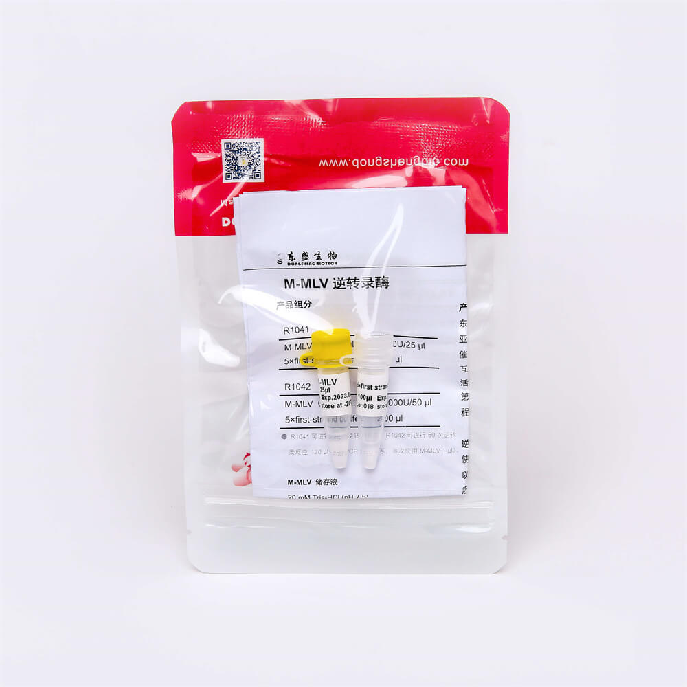 M-MLV逆转录酶是由一个 71 kD的单亚基组成的重组型DNA逆转录聚合酶。可以催化以RNA或DNA:RNA杂交链为模板的互补DNA 的聚合反应。本酶经修饰RNase H活性比普通的逆转录酶要弱很多,因此在合成第一链cDNA的过程中,可保证RNA的降解程度较低,从而使得率提高。