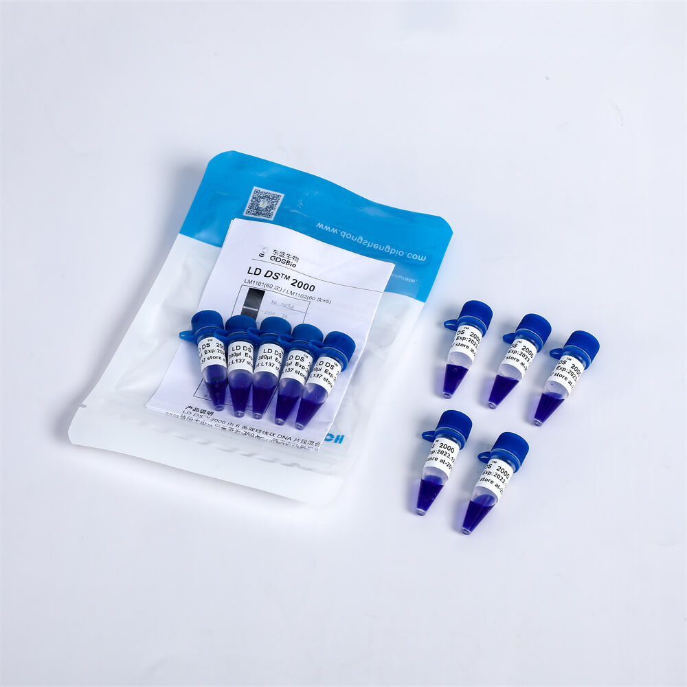 LD 100bp Ladder是由11条双链线状DNA片段混合而成的DNA分子量标准(DNA Marker/ DNA Ladder),适用于确定100 bp至1.5 kb的线性双链DNA片段大小,指示带为500 bp,便于电泳后观察。每条带都通过严格的物理定量,可用于测定目的片段的大小和含量本品为xpj.com官网生物LD系列DNA Marker,适用于新型核酸染料(如xpj.com官网DSRed等)预染法琼脂糖凝胶电泳。