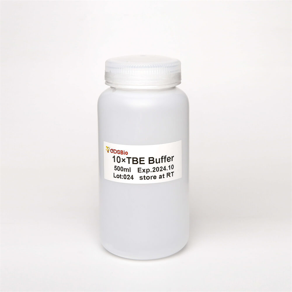 TBE缓冲液存放时间过长容易出现沉淀,影响电泳结果,因此配制为10×,工作时稀释20倍,浓度为0.5×。