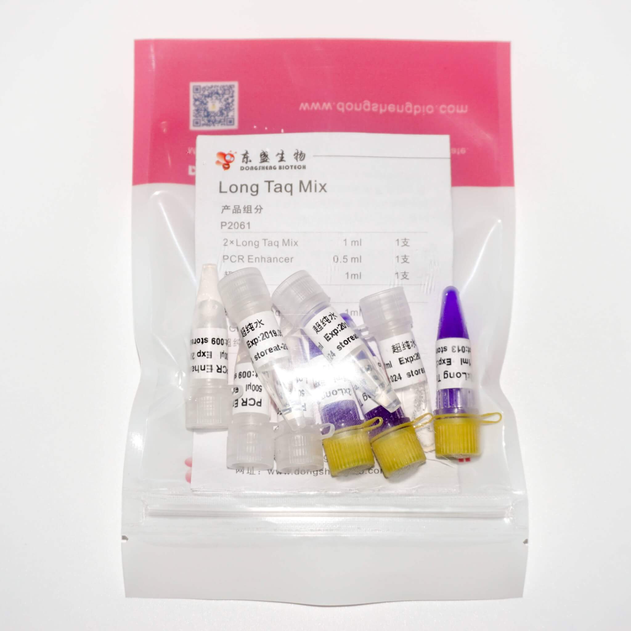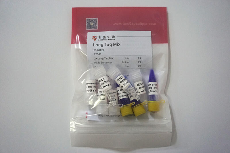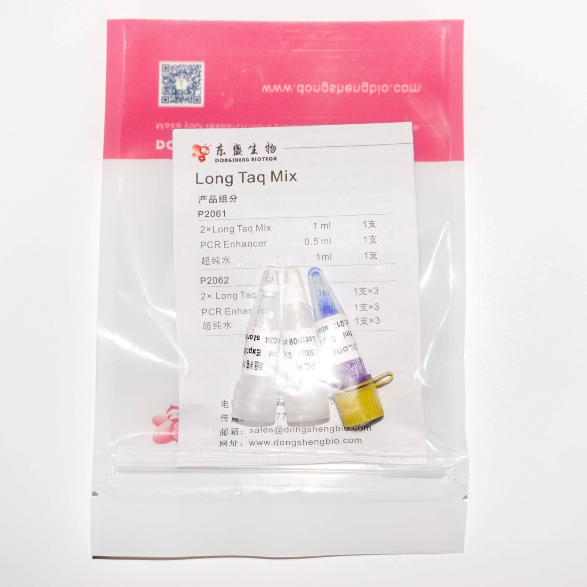 Long Taq Mix是2×浓缩的PCR扩增预混和溶液,含有Long Taq DNA聚合酶、dNTPs、缓冲液等PCR扩增必需组分(模板与引物除外)。使用时,仅需在扩增体系中加入模板和引物即可进行PCR,大大简化操作过程,缩短操作时间,降低污染(加样次数减少)。同时,由于体系内含有优化剂与增强剂,能够显著增强PCR扩增的灵敏度。