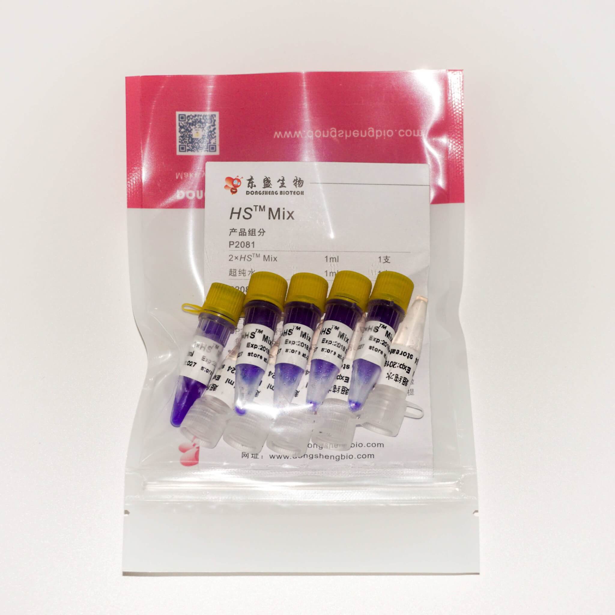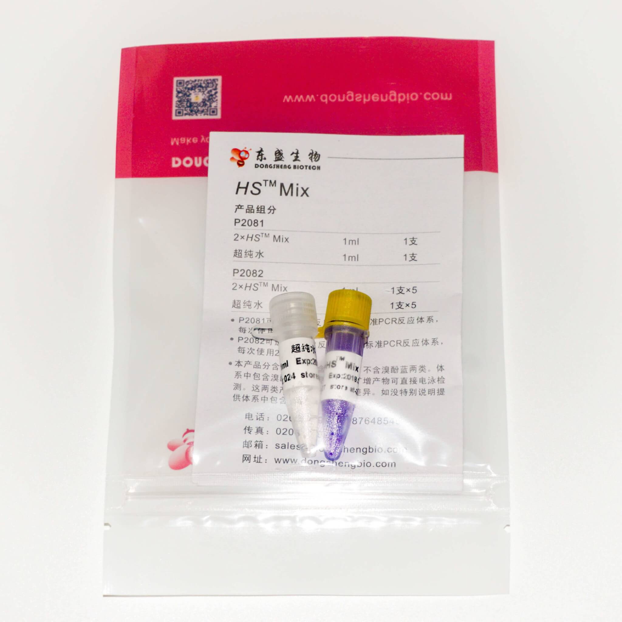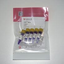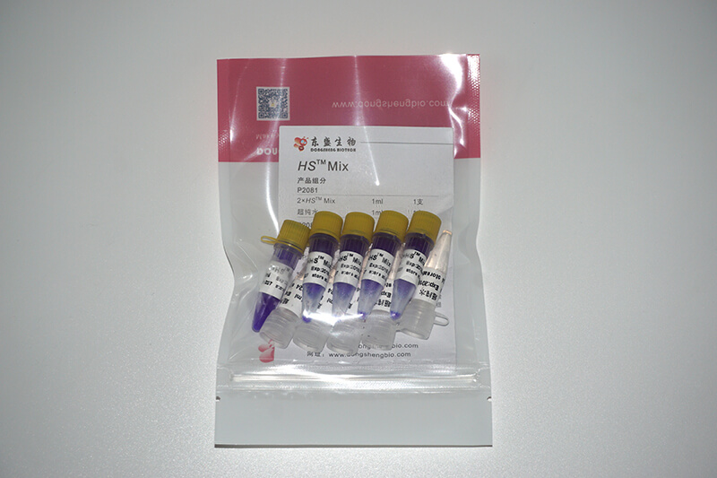 HS™ Mix是2×浓缩的快速高效PCR预混合溶液,含有HS™ Taq DNA聚合酶、dNTPs、缓冲液等PCR扩增必需组分(模板与引物除外)。使用时,仅需在扩增体系中加入模板和引物即可进行PCR,大大简化操作过程,缩短操作时间,降低污染(加样次数减少)。HS™ Mix的反应体系经特殊优化,减少引物二聚体的形成,显著提高PCR扩增的特异性。同时,由于体系内含有增强剂,能够显著增强PCR扩增的灵敏度。